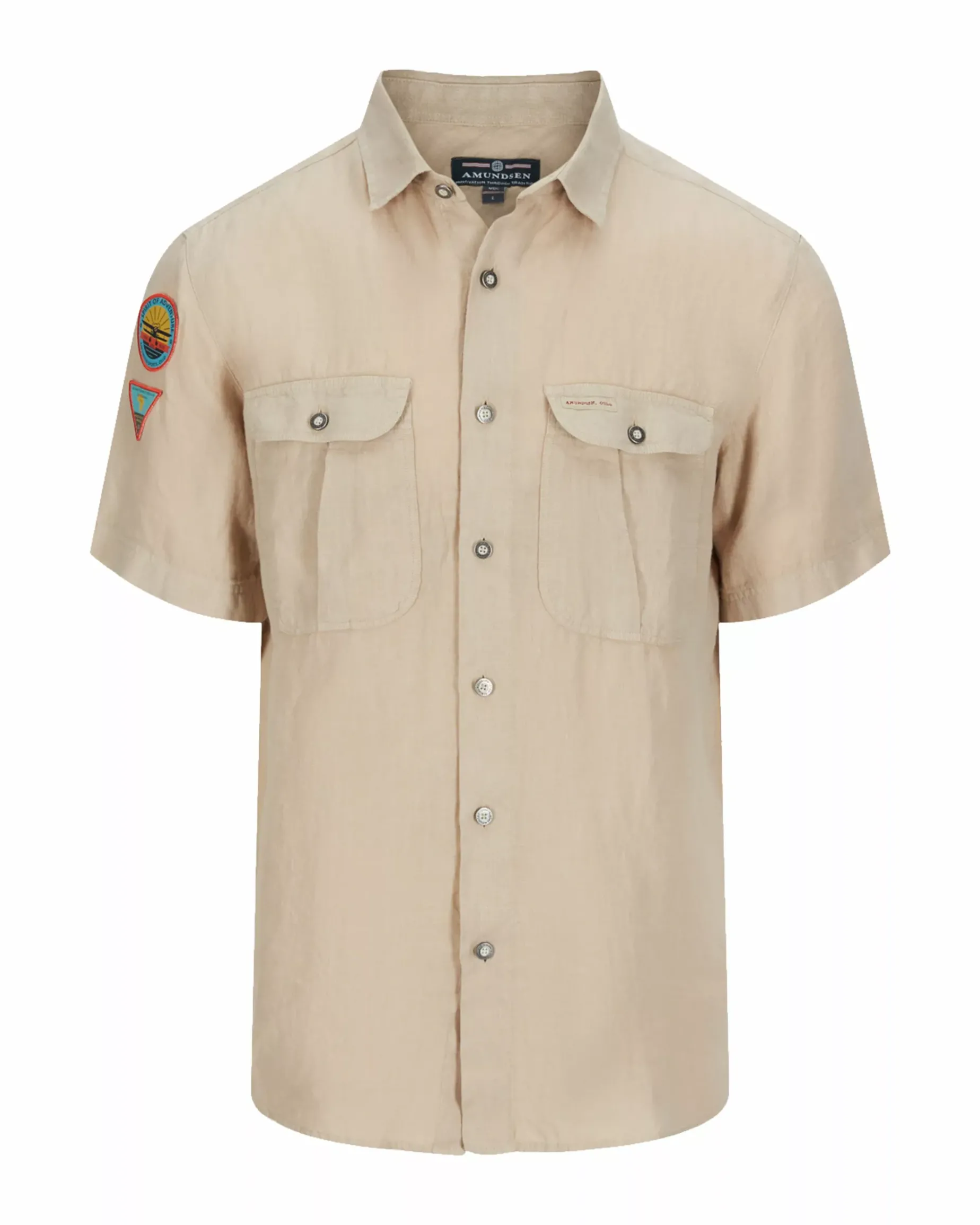This garment dyed soft linen shirt with large chest pockets and pre-folded short sleeves, is the more summery version of our favourite shirt from the African wilderness.