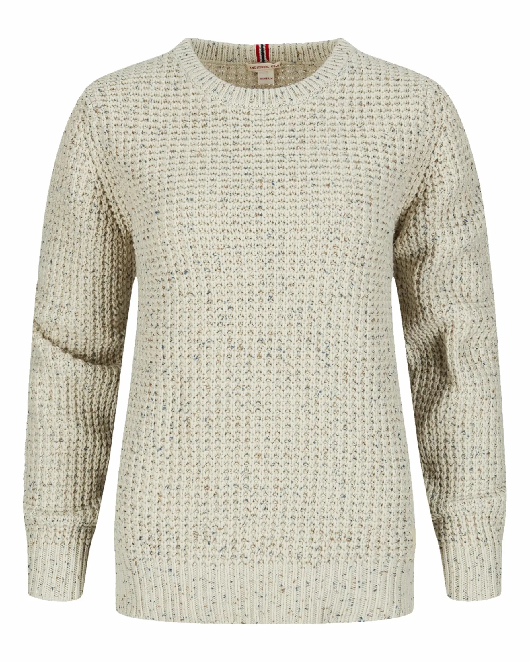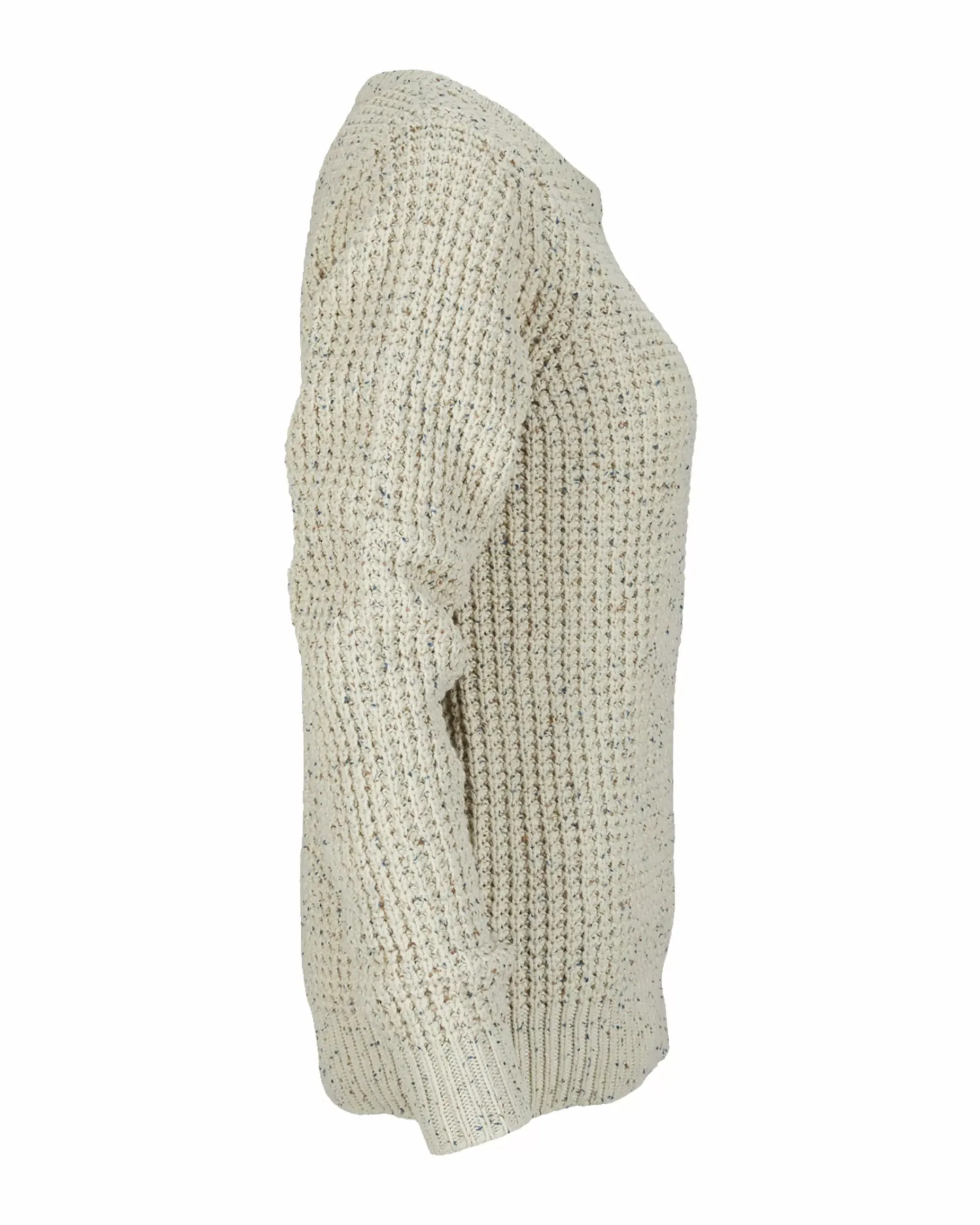 Knit with elements of soft blend of cotton, linen and nylon. It’s shaped to a relaxed silhouette with a round neckline and finished off with classic ribbed trims. The seed stitch gives this sweater its rich texture and will feel airy towards your body.