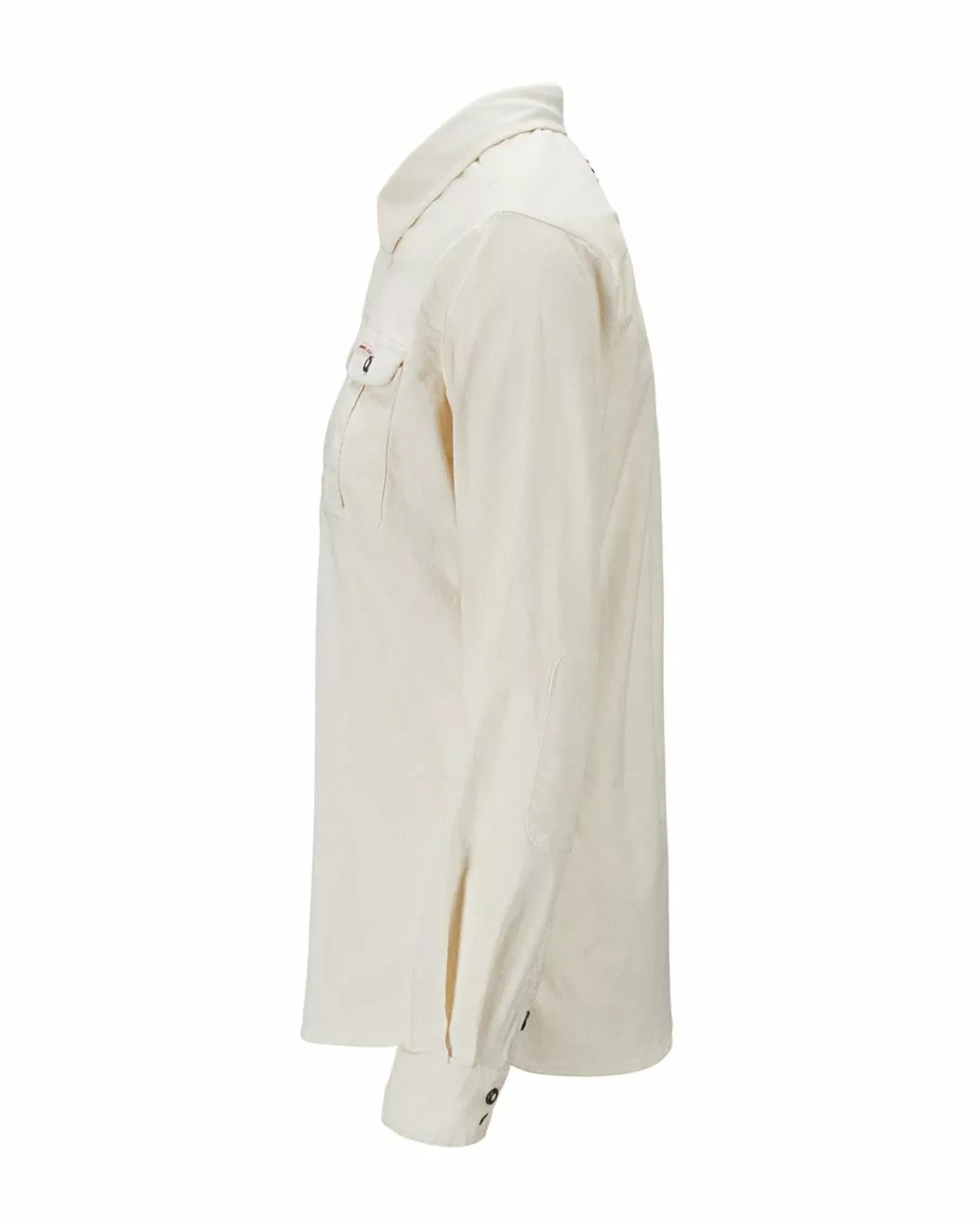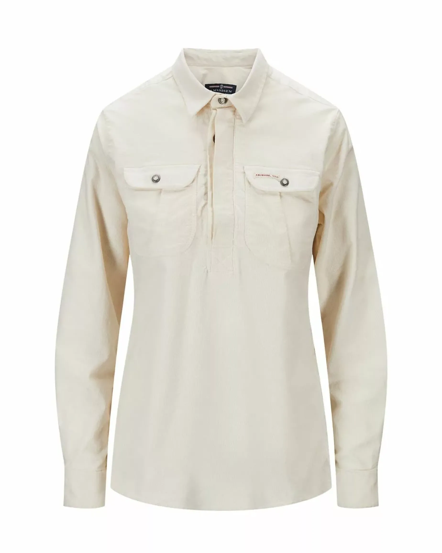 All-season pullover field shirt. Made in a thin needle stretchy corduroy with front buttons
